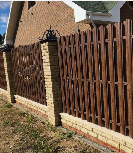 • Забор из металлического штакетника высотой от 0,5 до 2 метров обладает легкостью, и не требует усиленных опор, что экономит до 50% бюджета.