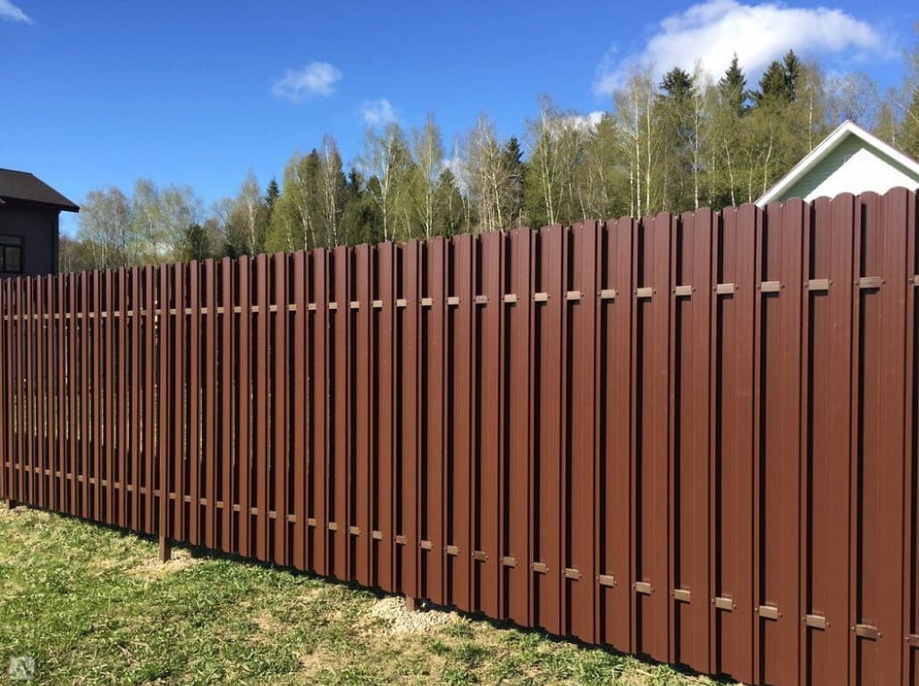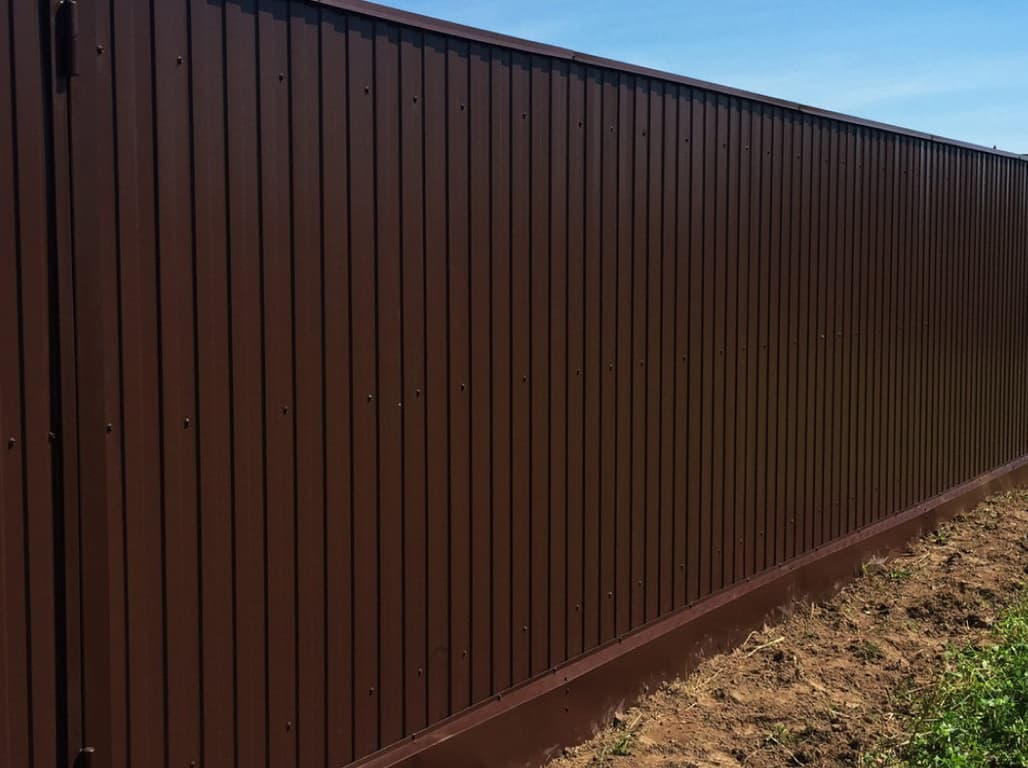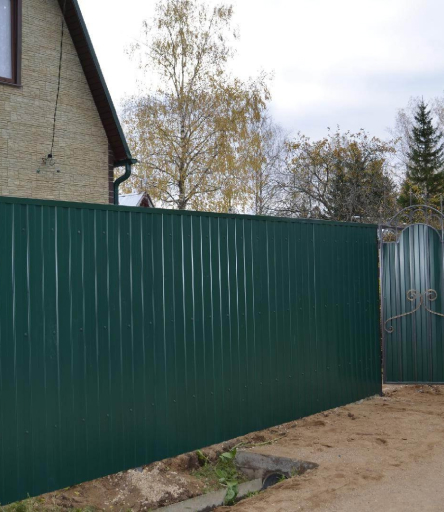 • Забор из профлиста высотой от 0,8 до 2 метров скроет территорию участка от посторонних.